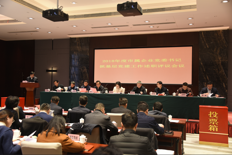 3月7日,按照市委统一部署,市委组织部、市国资委党委召开2018年度市属企业党委书记抓基层党建工作述职评议会。市委组织部副部长董丹红同志到会指导并讲话,市国资委党委书记、主任陈祖信主持会议。市国资委及其他归口管理单位党委(党工委、党组)分管领导,32家市属国企党委书记、组织部长以及来自企业基层的党员代表共140人参加会议。